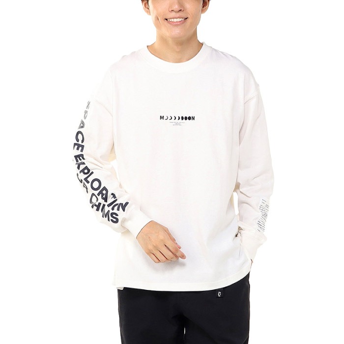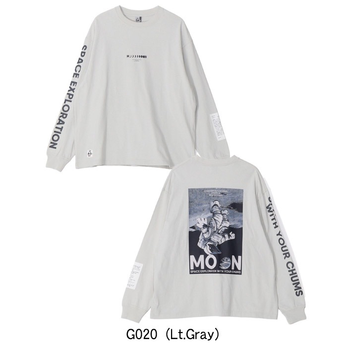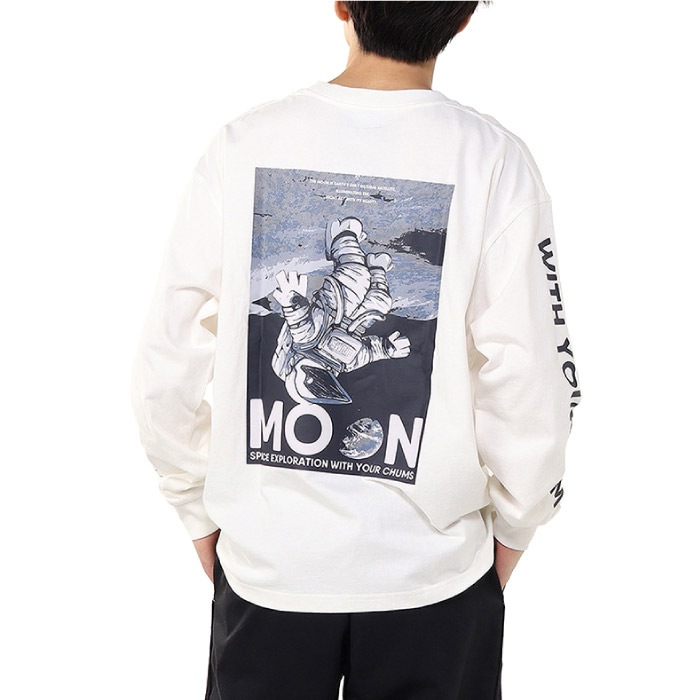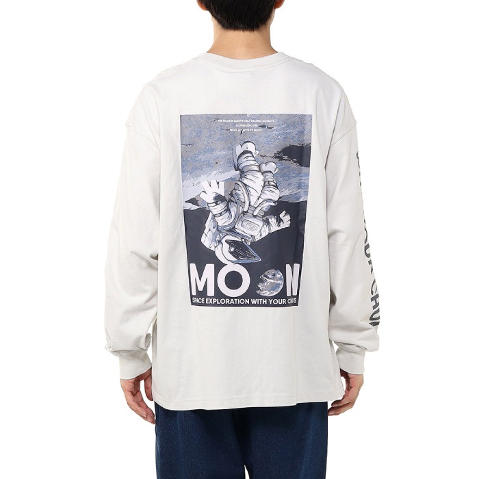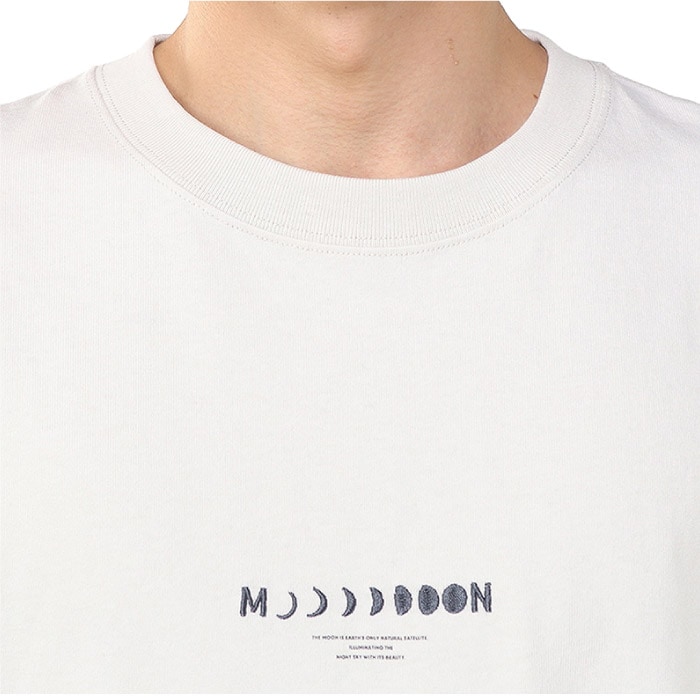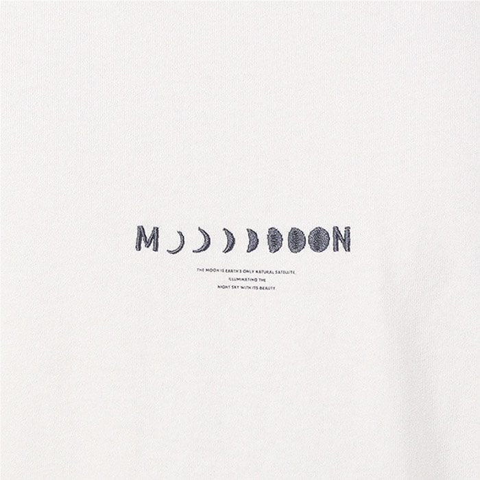 ゆったりとしたオーバーサイズシルエットのロングスリーブTシャツ。フロントには、月の満ち欠けと「MOON」の文字を組み合わせた刺繍グラフィックでシンプルながら洗練された仕上がりに。背面には、月面に浮かぶモノクロのブービーバードのバックプリントを配しました。デザインには「THE MOON IS EARTH'S ONLY NATURAL SATELLITE ILLUMINATING THE NIGHT SKY WITH ITS BEAUTY.」(「月は地球の唯一の衛星で、夜空を照らす美しい天体です」)というメッセージが添えられています。