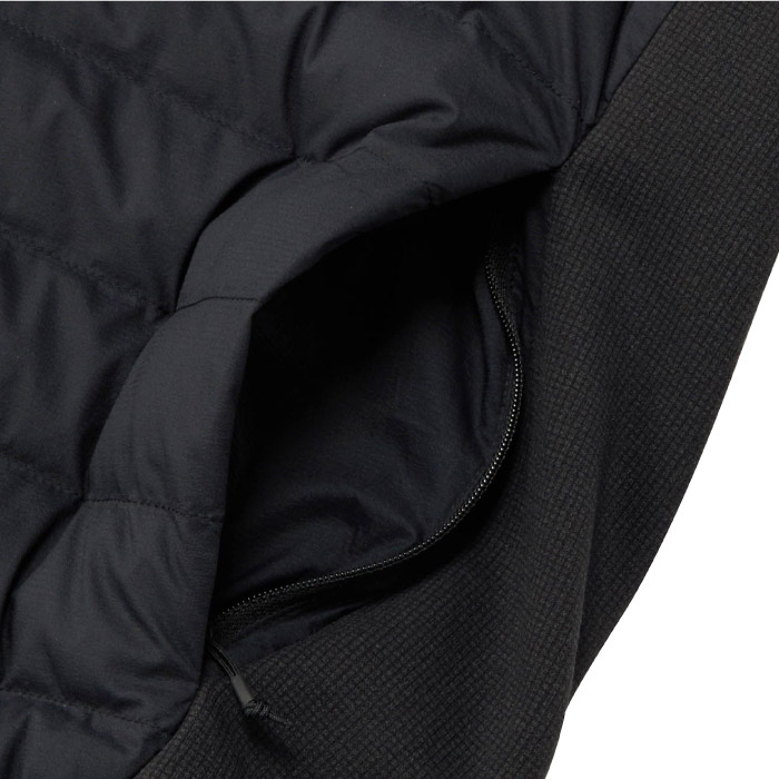 THERMOPLUME+を中わたに採用/前身頃をはっ水素材、脇、袖下をストレッチ素材で切替/左右脇ファスナー付ポケット/リフレクターロゴ